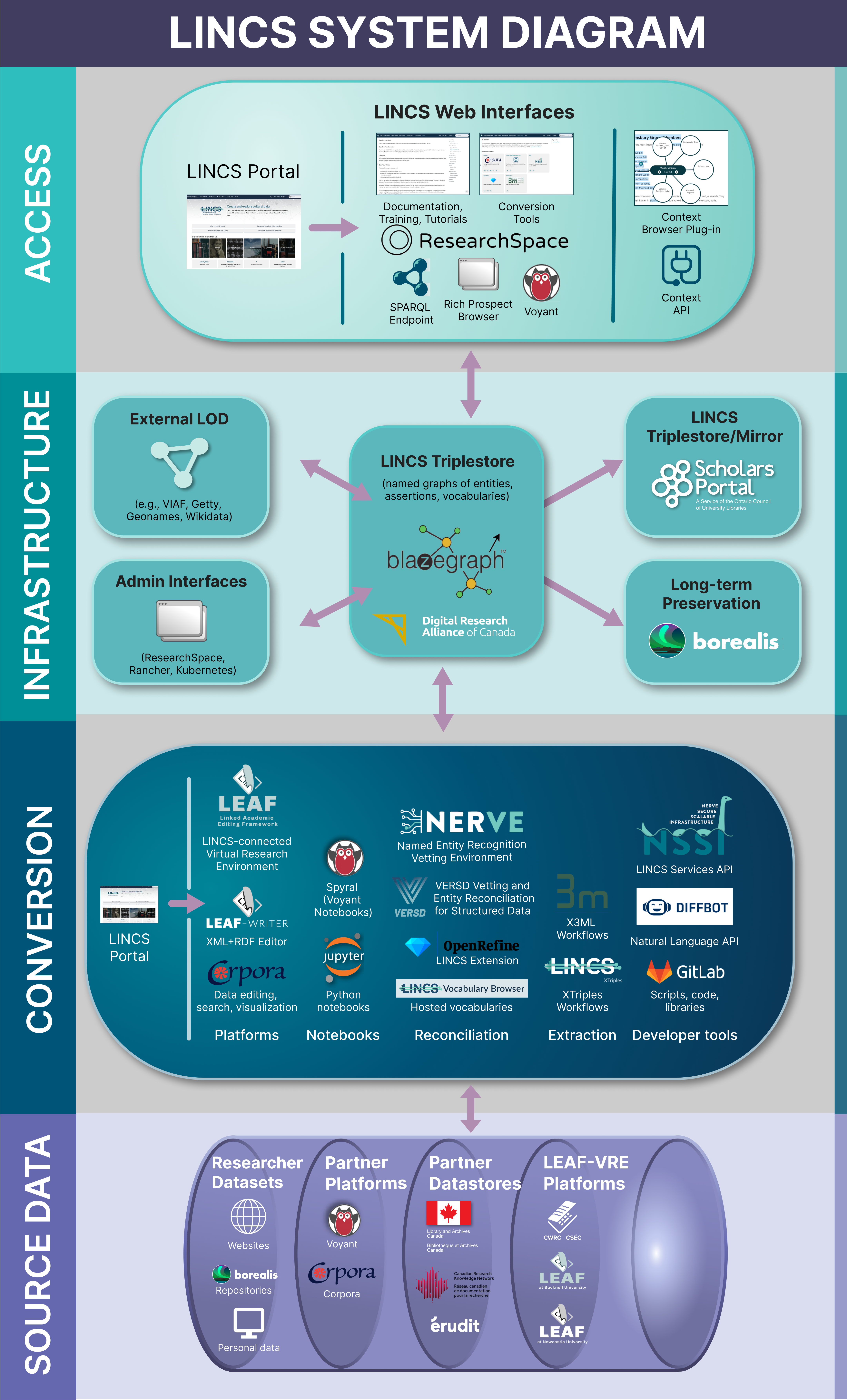 LINCS leverages existing solutions and expands the Digital Research Alliance of Canada’s infrastructure to mobilize large-scale, heterogeneous datasets as Linked Open Data (LOD) for humanities research.