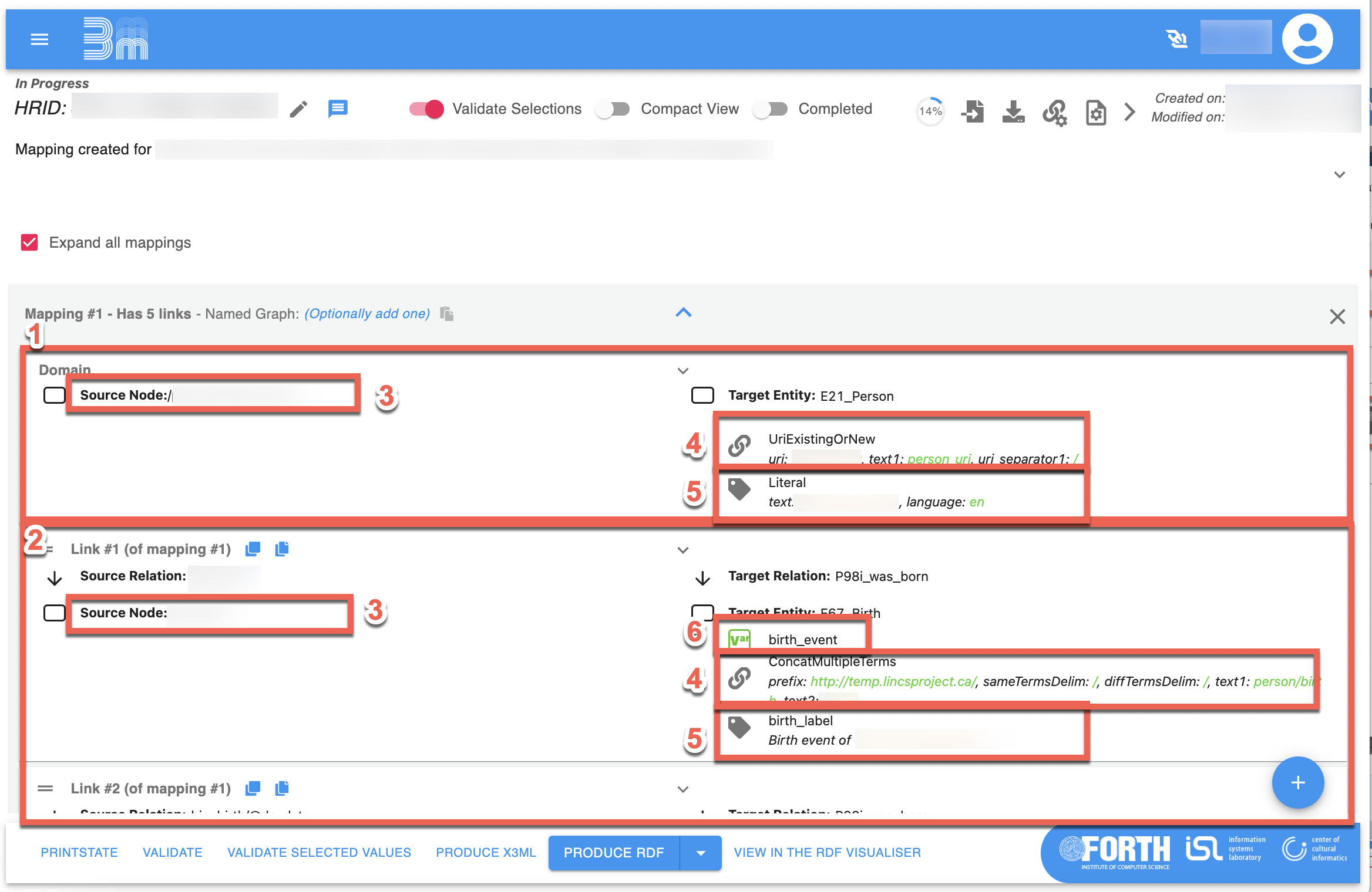 | Mappings Overview page with Produce RDF outlined. |